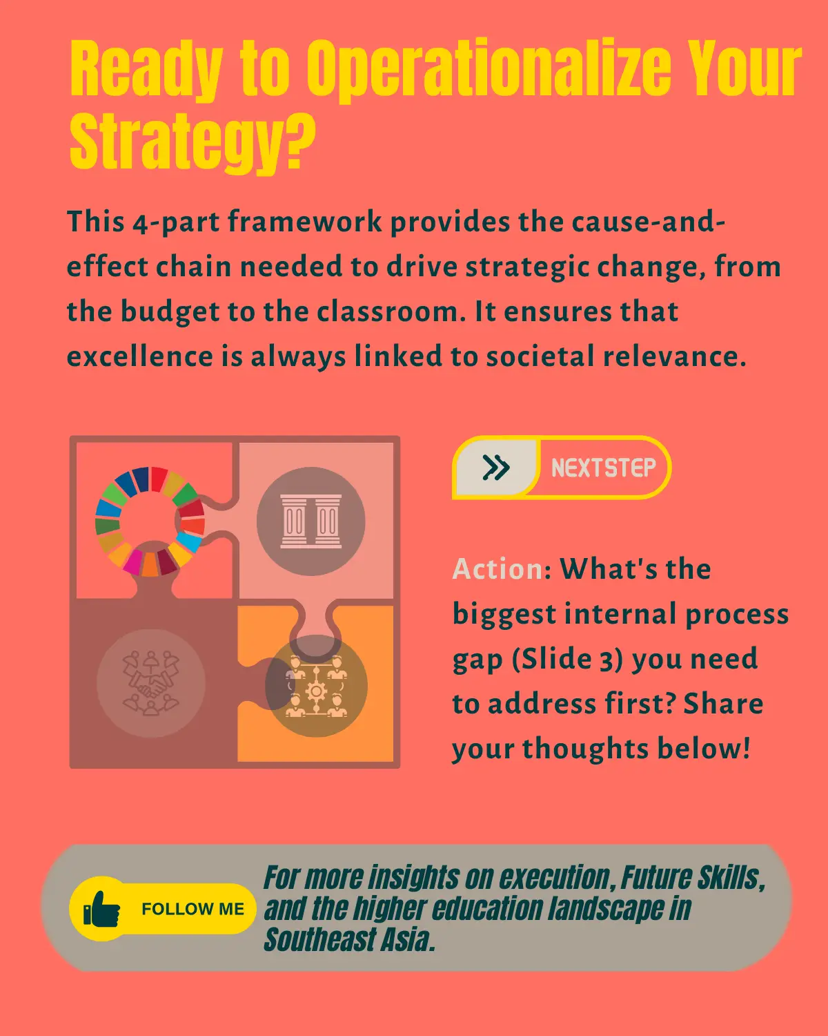 Many universities articulate ambitious strategies, but struggle to connect them to daily practice and measurable outcomes. Three gaps are especially visible: